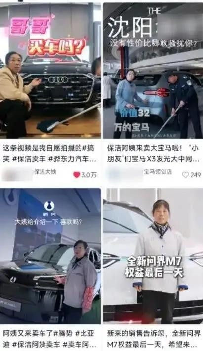 视频走红后,众多品牌的经销商店也纷纷效仿,包括奔驰、宝马、沃尔沃、奥迪等品牌在内,都派出自家的保洁阿姨上阵拍视频,想复制这种成功。然而,当类似的视频泛滥后,就没有引人观看的吸引力了,这也意味着流量开始慢慢退去了!