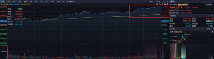 港股创新药,又是赢麻的一天,恒生创新药指数,再次大涨4.7%,尤其是在下午A股收盘后,放量上涨近2%,强的让人害怕。